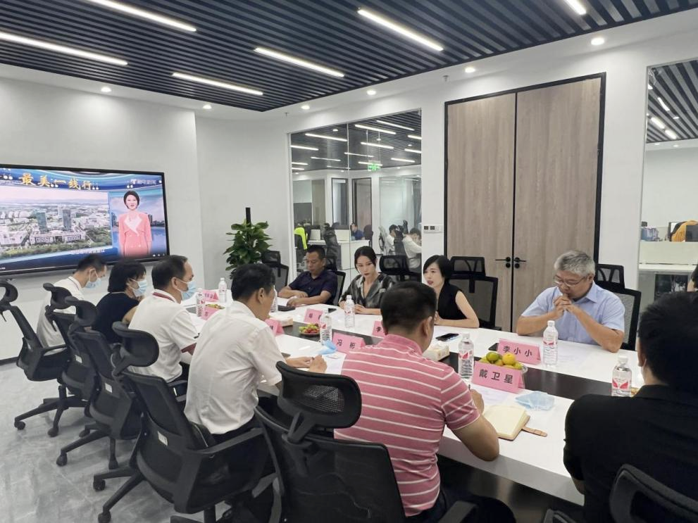 9月16日,市府办二级调研员冯彬、市科技局四级调研员罗广林、市科技局成果转化与区域创新科科长戴卫星、市工信局中小企业综合服务科副科长刘洋、松山湖科技教育局科员肖星星等领导,在松山湖国际创新创业社区综合政策办主任崔智成的陪同下,莅临三鼎子公司——广东未来智慧城市科技有限公司(下称“未来智慧城市”)调研座谈交流指导工作。三鼎总裁李绍丹、三鼎董事长办公室主任喻静、未来智慧城市总经理李小小以及未来智慧城市副总经理李志刚一同参加座谈会。